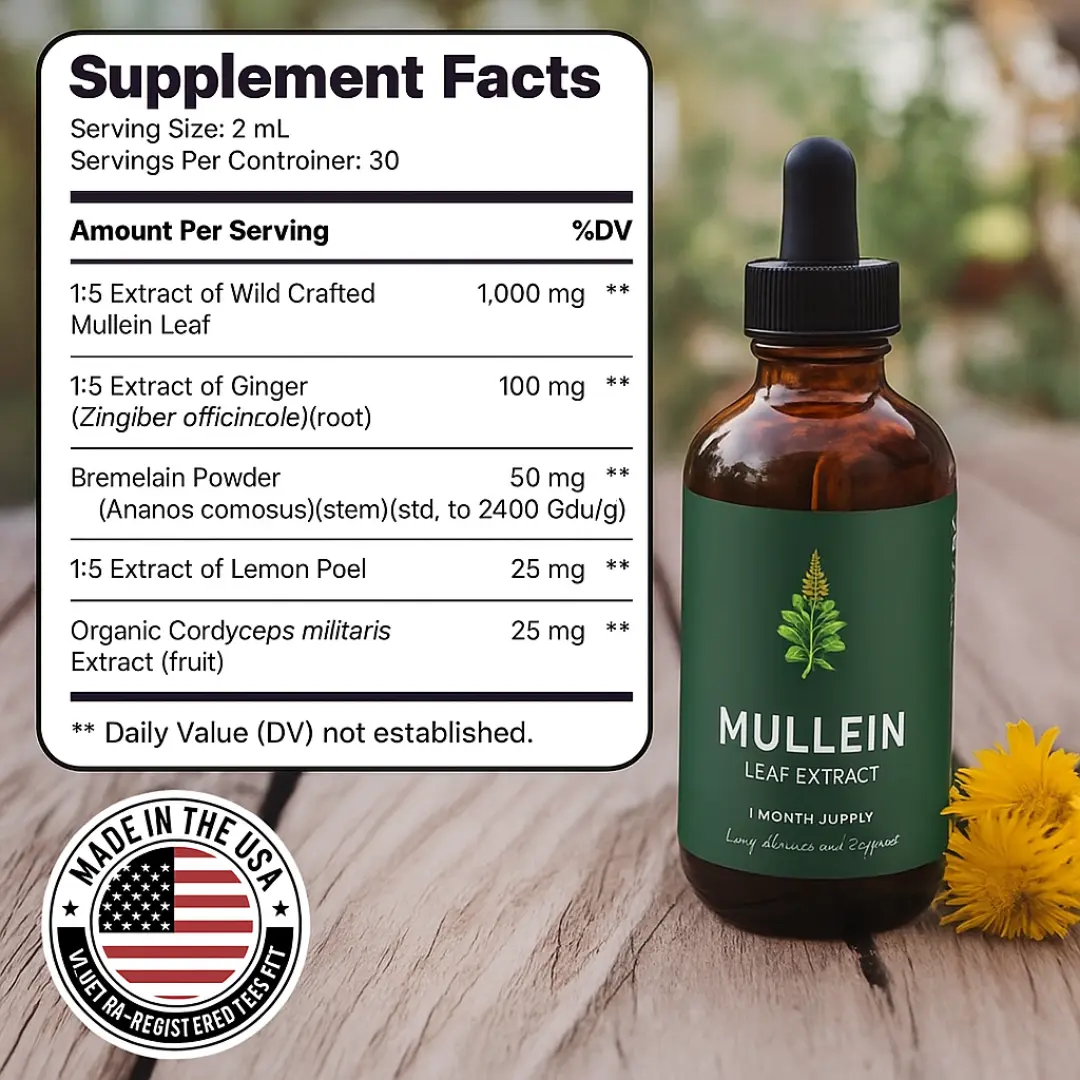 Most lung supplements underdose mullein — the one herb that actually clears you out. RespiClear delivers a high-potency liquid extract of wildcrafted mullein — not weak powders, not fillers.